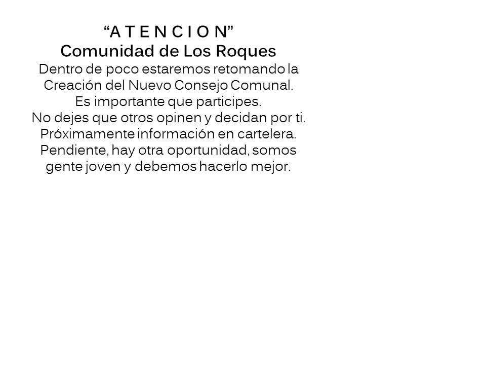 Zuleika Matamoros: ¿Por qué estructurar el Consejo Comunal?Iveth García: En vista de la magnitud del alcance del nacimiento del nuevo estado, el Consejo Comunal debe estructurarse para apoyar el logro de estos objetivos, educarse para mantenerlos y perdurar en la seguridad y constancia para que nuestra comunidad conserve una calidad de vida óptima.