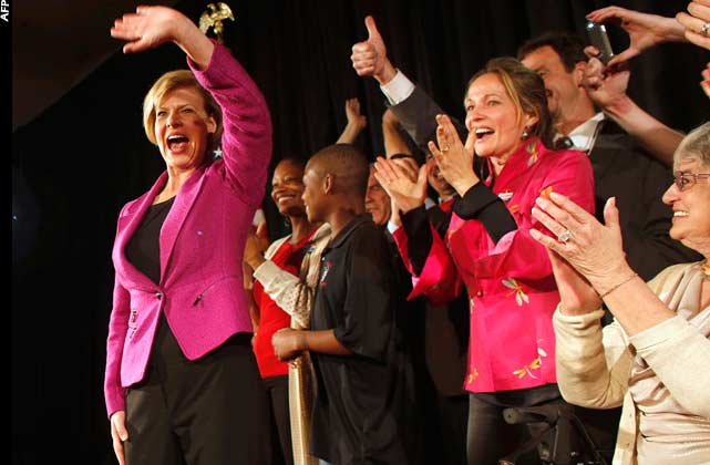 07/11/12.-Tammy Baldwin, demócrata de Wisconsin, hizo historia. Ganó un escaño en el Senado sin tener que ocultar su lesbianismo durante su campaña. Se ha convertido ya en una heroína para el movimiento de avance de los derechos de la comunidad gay, en unos comicios en los que, además, Maryland aprobó las uniones entre personas del mismo sexo. En total, los demócratas ganaron al menos un escaño en el Senado respecto a la composición que había antes de las elecciones. En total, se renovaron 33 asientos en esa cámara.