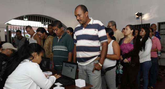 Las computadoras son manejadas por operadores que solicitan a los votantes su número de cédula, lo introducen en la data y con ello obtienen la mesa de votación y el renglón del cuaderno donde le corresponde votar y firmar al ciudadano.