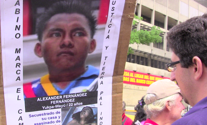 Sabino Romero acompañado de Lucía su compañera de incansables luchas, junto a Carmen "Anita" Fernández, madre de tres jóvenes yukpas asesinados; Vicente Annane, Adolfo Maikishi, Jackelina Méndez, Franklin Parapera forman parte de una lista de 48 yukpas que arribaron a Caracas, como en tiempos ancestrales: a pie. Decidieron bajarse del autobús en Tazón, al ser presionados por funcionarios de la Guardia Nacional, quienes los conminaban a llegar al helicoide escoltados por ellos, como si de niños se tratara o fuesen seres manipulables, pero los yukpa son firmes como la roca y estaban bien determinados con su plan, se enfilaron para la ciudad a cumplir con sus objetivos.