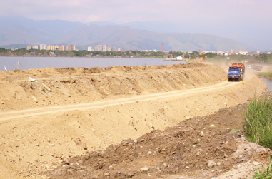 Más de 23 mil metros cúbicos de material constituido entre arcilla y elementos granulares, provenientes de las canteras Guayabal y Conejera, son empleados en el levantamiento de un contramuro en la parte seca, que al ser concluido alcanzará los 3 metros de altura y 3 de ancho.
