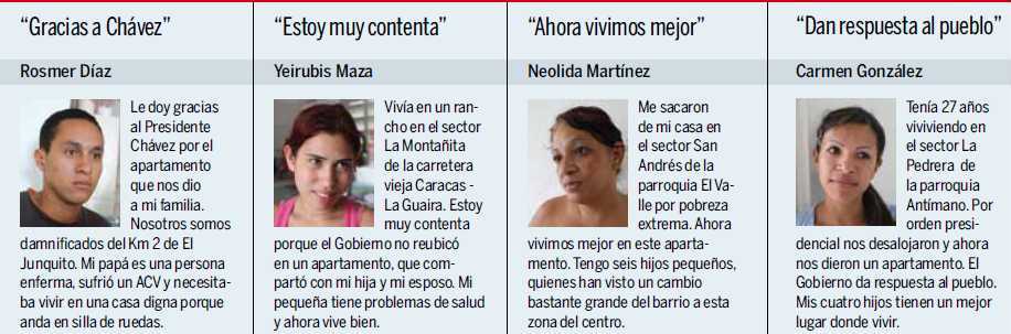 18/11/12.- “Sólo Chávez ayuda a los pobres, ningún Presidente nos había ayudado. Cada vez que pasaba una vaguada, con nuestros propios recursos teníamos que levantar el ranchito porque el Gobierno no nos tomaba en cuenta, pero ahora tenemos viviendas dignas”.