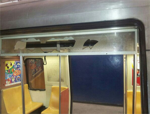Pero los vagones del metro no se salvaron tampoco de los actos vandálicos. Ataques de "tánganas", kilos de papelillos y hasta lámparas rotas fue lo que se vio en los vagones al final de la jornada.