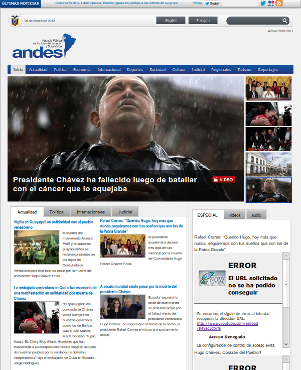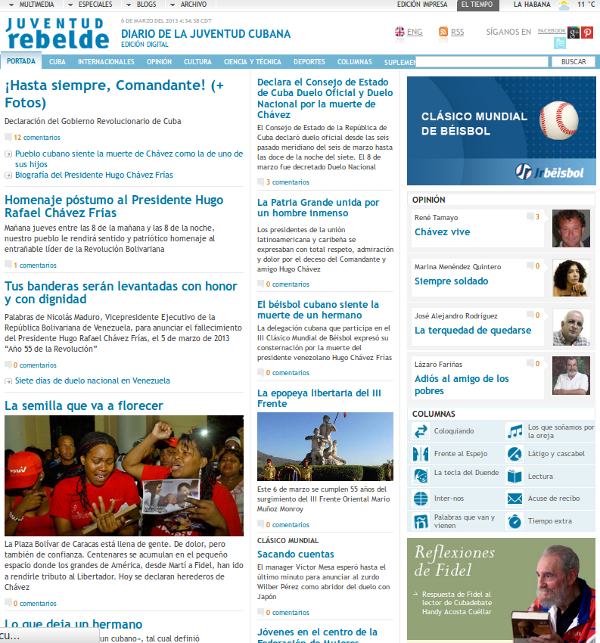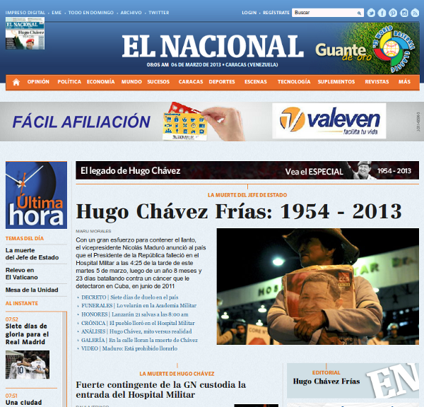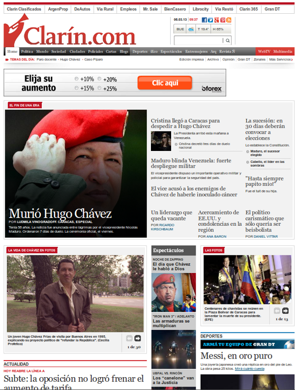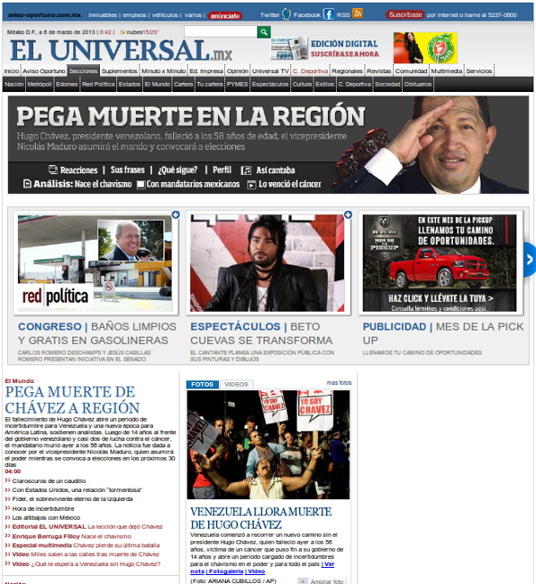 Así reseñan las páginas web de Latinoamérica el fallecimiento de Hugo Chávez