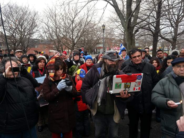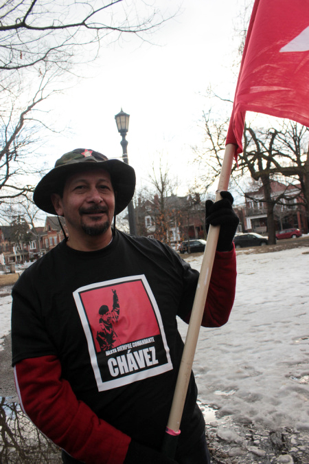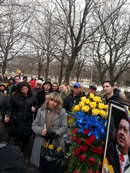 Con lágrimas y alegría, más de 200 personas se dieron cita para demostrar su admiración y apoyo a las ideas revolucionarias del Comandante Hugo Chávez y el pensamiento Bolivariano. No importaron las bajas temperaturas del frío canadiense, la nutrida concentración se mantuvo por más de 3 horas. ‘Comandante Chávez seguiremos tu ejemplo Revolucionario’, las y los presentes gritaban. ‘Chávez somos todos’, ‘Chávez vive en todos’, ‘abajo el imperialismo’, se escuchaba una y otra vez.