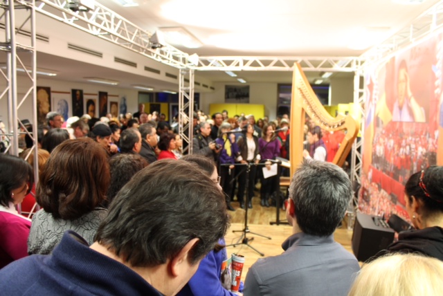 Se inicio con la proyección del vídeo del CNE “Soy”, mediante el cual se hace un llamado a la Elecciones Presidenciales del 14 de abril de 2013. Posteriormente, se entonaron las notas del Himno Nacional, cantado por el Comandante Presidente Hugo Chávez, el día 07 de octubre de 2012. El Himno Patrio inspiró al Embajador de la República Bolivariana de Venezuela, Rodrigo Chaves, quién ofreció unas emotivas y profundas palabras de salutación, e invitó a los presentes a contemplar la exposición fotográfica “100 motivos 100 recuerdos – Desde mi corazón” que se organizó en el marco de este encuentro con imágenes que revivieron momentos estelares de la vida y trabajo de nuestro querido Presidente.