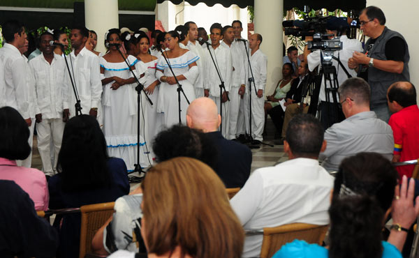 Justo a la hora en que el corazón del presidente Chávez dejó de latir, solistas de la Academia Nacional de Canto Mariana de Gonicht, que dirige el maestro Hugo Oslé Baraquiso, unieron sus voces en un Ave María dedicado a Chávez que hizo vibrar a los asistentes, entre quienes se encontraban el señor Edgardo Ramírez, embajador de Venezuela en Cuba, embajadores que representan a los países del ALBA y familiares de los Cinco.