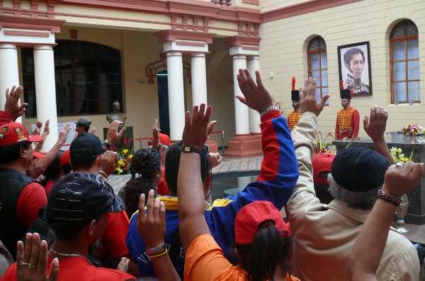8 de abril de 2013.- Juramos ante tu presencia infinita, que tu esfuerzo no será en vano y que asumimos tu legado revolucionario por una Patria independiente y socialista, el cual defenderemos e impulsaremos, aún a costa de nuestras vidas, expresaron más de trescientos dirigentes de los Círculos Bolivarianos de Venezuela provenientes de todos los estados de Venezuela, frente a la estatua del Libertador Simón Bolívar en la Plaza Bolívar de Caracas y ante el féretro del comandante Chávez. en el Cuartel de La Montaña en el 23 de Enero, en acto realizado para afirmar su compromiso de lealtad con los valores fundamentales de la Revolución Bolivariana y el comandante Chávez.