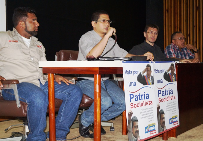 Más de 120 personas colmaron el minicine de Edelca en Puerto Ordaz el lunes 8 de abril. Allí se realizó, por parte de la Plataforma Patria Socialista, una nueva edición del Foro “El legado de Chávez” con la presencia de Luis Bonilla Molina, Daniel Rodríguez, Nicmer Evans, Stalin Pérez Borges y Juan Carlos Monedero. El mismo fue moderado por la trabajadora de Alcasa Nieves Tamaroni.