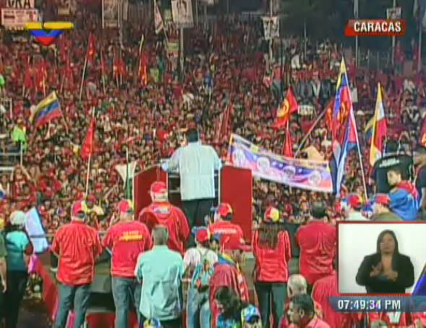 11 abril 2013 - “Esta es la primera vez en la historia de la Revolución Bolivariana que llenamos esta avenida sin él. Este es el pueblo de Chávez, este es el puesto de Chávez, y Chávez sigue al frente con su ejemplo, con su amor”,