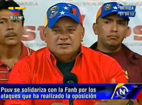 Caracas, 14 de abril de 2013.- El primer vicepresidente del Partido Socialista Unido en Venezuela (PSUV), Diosdado Cabello, destacó la alta participación popular durante los comicios presidenciales de este domingo.