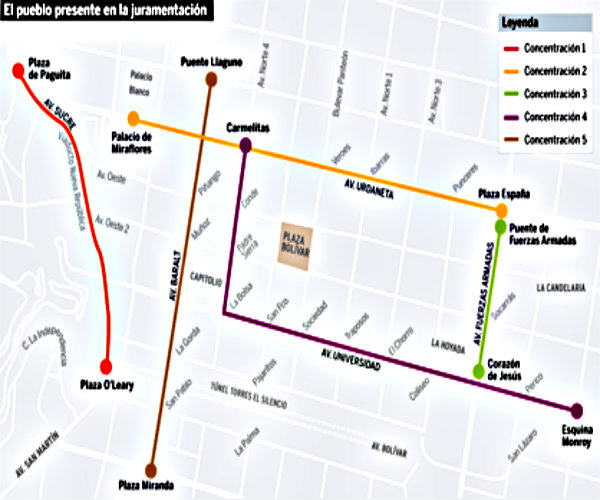 El Gobierno también anunció que están previstas concentraciones populares, desde tempranas horas del día, en las adyacencias del Palacio Federal Legislativo y en siete avenidas del centro de Caracas: Baralt, Fuerzas Armadas, Lecuna, Universidad, Urdaneta, Bolívar y México.