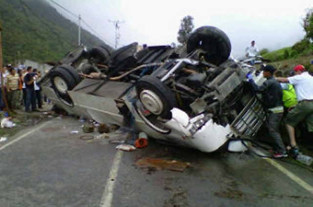 07/05/13.-Una unidad de transporte público chocó con una gandola a la altura del poblado Otopum dejando como saldo 7 fallecidos y al menos 14 heridos.