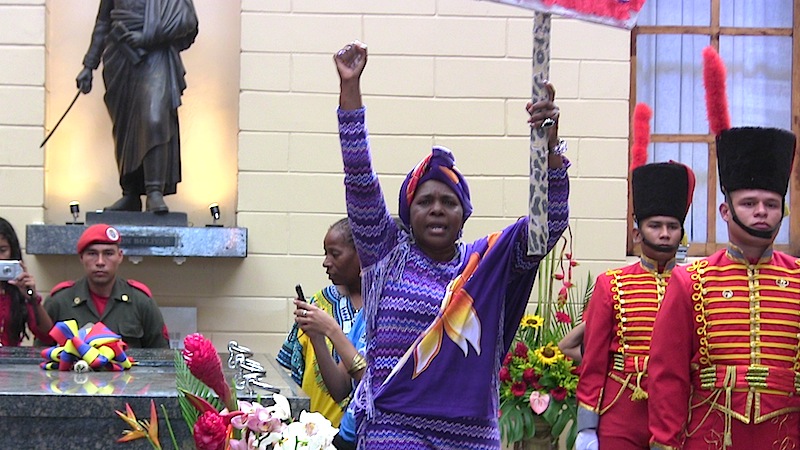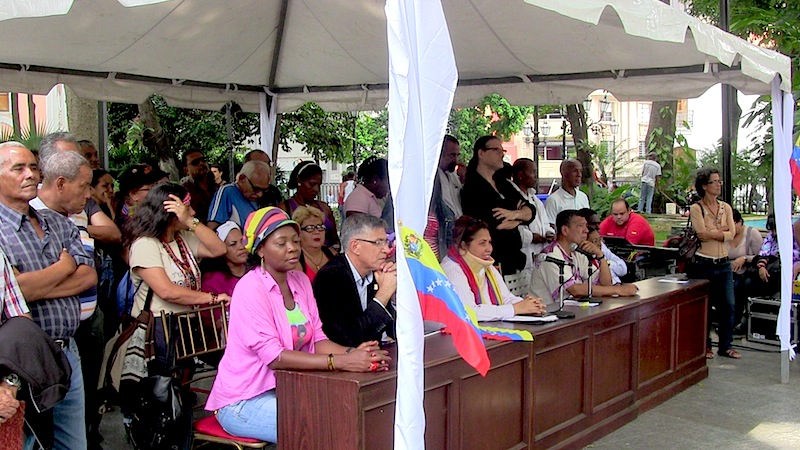 En esta emblemática Plaza Mayor, la diputada María León, presidenta de la Comisión de Familia de la Asamblea Nacional (AN), hizo un recorrido histórico sobre la lucha y resistencia de los afrodescendiente en el país. La diputada León, relató a la audiencia su propia experiencia como afrodescendiente, desde sus ancestros esclavizad@s dentro del sistema opresor colonial y post colonial.