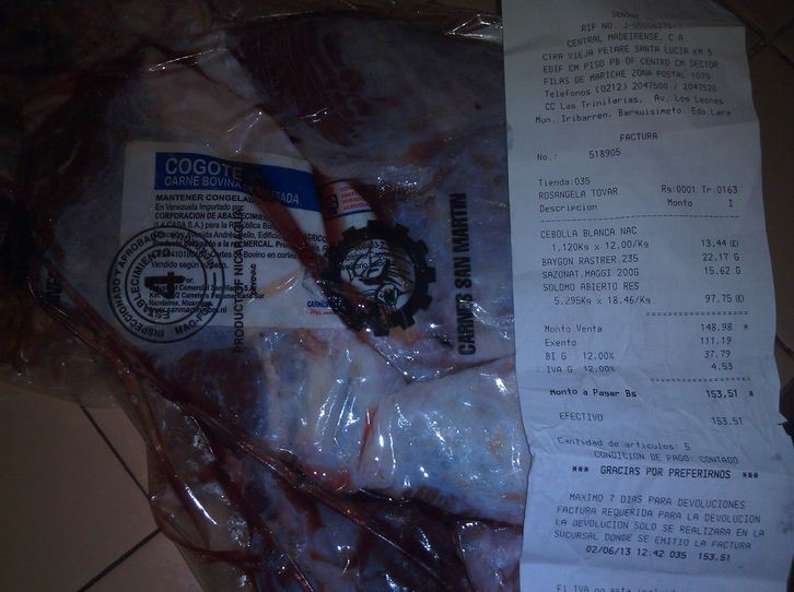 3 de junio de 2013.- Este domingo todos pensaron que se trataba de un simple rumor, pero para lamentable sorpresa, no era un chisme sino la purita verdad: estaban vendiendo en el Central Madeirense ubicado en el centro comercial “Las Trinitarias”, de Barquisimeto, Lara; carne identificada con el sello de la Corporación de Abastecimiento y Servicios Agrícolas (CASA).