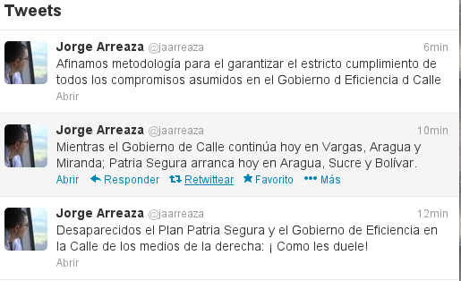 03 de Junio de 2013.- A través de su cuenta en twitter, el vicepresidente Jorge Arreaza informó que el Gobierno de la Eficiencia en la Calle continúa desplegado en los estados Vargas, Aragua y Carabobo.