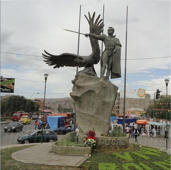 Monumento del Mariscal Sucre ubicado en la Av. 6 de agosto de Cochabamba en Bolívia (Foto. Archivo)