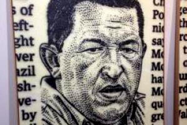 El material utilizado para dar vida al retrato del Gigante de la República Bolivariana de Venezuela, fue cera de parafina en técnica de pirograbado, agregando pigmentos de color a la cera caliente, que luego fue rociado sobre el lienzo. Los retratos se diseñan para simular ilustraciones de periódicos y están enmarcados dentro de fragmentos de textos.