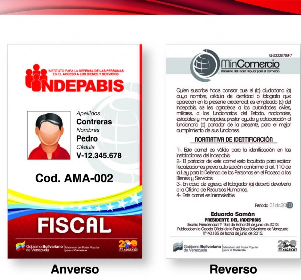 16-06-13.-Para realizar actividades de fiscalización los funcionarios del Instituto para la Defensa de las Personas en el Acceso a los Bienes y Servicios (Indepabis), deben portar una nueva identificación institucional y la autorización por la Dirección Nacional de Fiscalización y los coordinadores regionales.