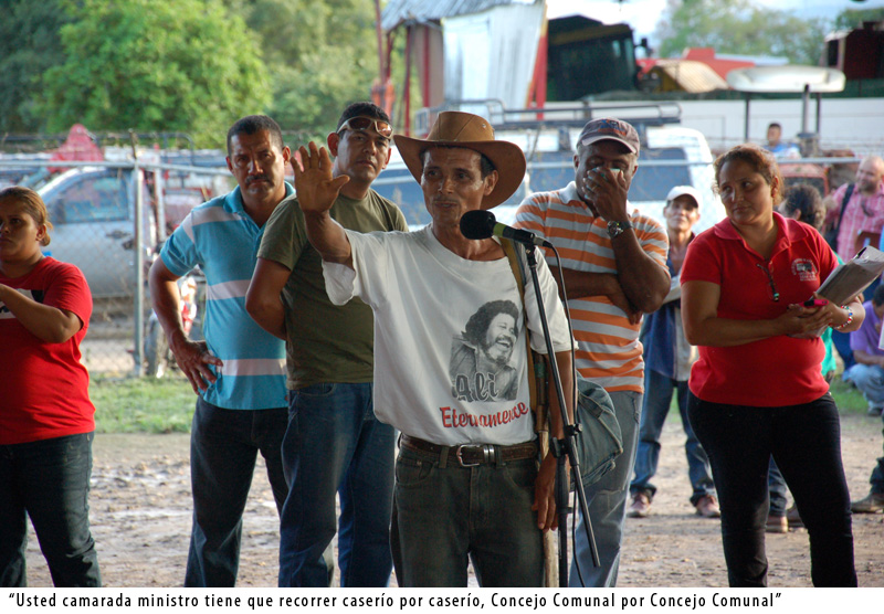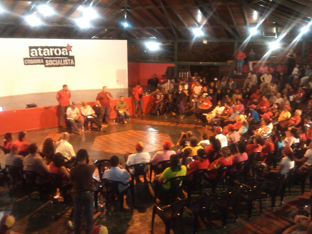 Distintos voceros de las comunas propusieron la construcción de Corredores Territoriales para crecer en coordinación y en empoderamiento popular. “Se trata de liberar zonas y que la Revolución tenga dominio total: que sea el pueblo quien controle la alimentación, la producción, la seguridad, la educación, la salud, todo el tema social, y que incluso el tema político sea controlado desde el mismo pueblo con su construcción diaria”, explicó el vocero principal de la Comuna, Ángel Prado, desde la mesa que compartió con el ministro. En Lara la derecha ganó las elecciones últimas, y la preocupación por recuperar terreno y disputar poder con los alcaldes y gobernadores de la oposición o que, aún dentro del partido de gobierno, no responden a las expectativas de los pobladores, sobrevoló cada planteo. Otras voces pusieron el acento en el análisis político e ideológico, proponiendo no quedarse en la mera enunciación de pedidos y necesidades. Alexander Alayo de El Maizal reclamó que “las comunas no sean un mero hecho administrativo, no podemos volver a la situación del 2002, 2003, donde había miles de cooperativas… en carpetas debajo del brazo. Eran cooperativas de maletín, para ser beneficiarios de créditos solamente. No queremos que eso pase con las Comunas; la construcción cotidiana del Poder Popular se hace sobre la base de la consciencia, con recursos o sin recursos, porque si se profundiza la crisis económica y el dinero del petróleo no alcanza para todo, ¿qué hacemos para avanzar? Hay que establecer un acuerdo entre el Ministerio y el pueblo, pero para avanzar, demostrando la voluntad política de profundizar la revolución, más allá de los problemas” dijo, y fue uno de los más aplaudidos.