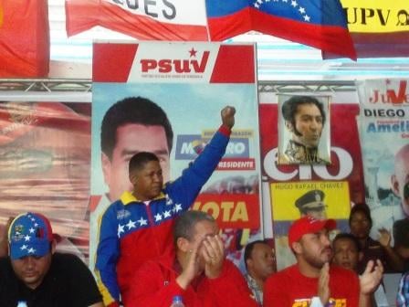 Rafael Ruíz Manríquez, candidato del Gran Polo Patriótico en el Municipio Diego Ibarra, junto a los candidatos (as) a concejal de la alianza, Teresa de Villegas, por el Movimiento Revolucionario Tupamaro, Luis Ruíz suplente; Luís Ramos, trabajador activo de Industrias Diana C.A. y vocero del Consejo de Trabajadores. (Está en la imagen con la chaqueta de Venezuela con el brazo levantado)