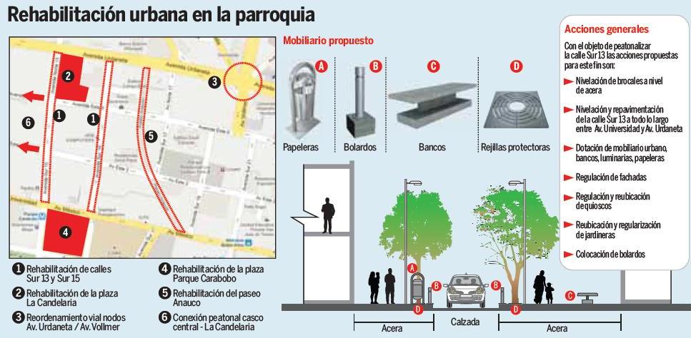 Agregó que también se incorporó al Plan Candelaria la propuesta sobre la bulevarización de las calles Sur 13 y Sur 15, que se unirán en una especie de circuito a Parque Carabobo con la plaza La Candelaria. Aclaró que en estas vías no se eliminará el tránsito vehicular.