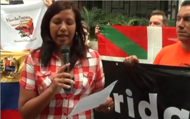 28 de septiembre de 2013.- El miércoles 25 de septiembre, miembros de numerosas organizaciones (PCV, JCV, Coordinadora "Que no calle el cantor", SURCO, Fundación Pakito Arriaran, BRISA, Marcha Patriótica y Movimiento Continental Bolivariano entre otras) y el pueblo revolucionario en general le exigieron al Gobierno Bolivariano, referente para todos los pueblos del mundo que luchan por la justicia social, que libere a los compañeros Asier Guridi y Julián Conrado, y pida la repatriación de Ilich Ramírez en una concentración ante la Cancillería venezolana. (ver video)