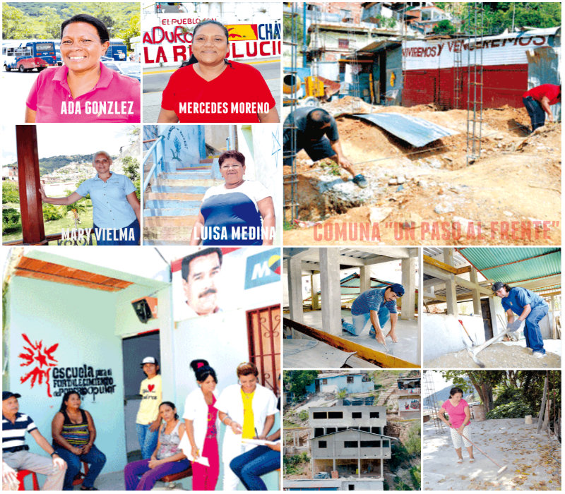 Mary Vielma, vocera de la comuna, recuerda que una vez empapados en el tema se agruparon en 12 consejos comunales y empezaron por elegir el nombre. Se decidieron por Un paso al Frente, rememorando el Frente Francisco de Miranda porque allí los ayudaron cuando eran Sala de Batalla.