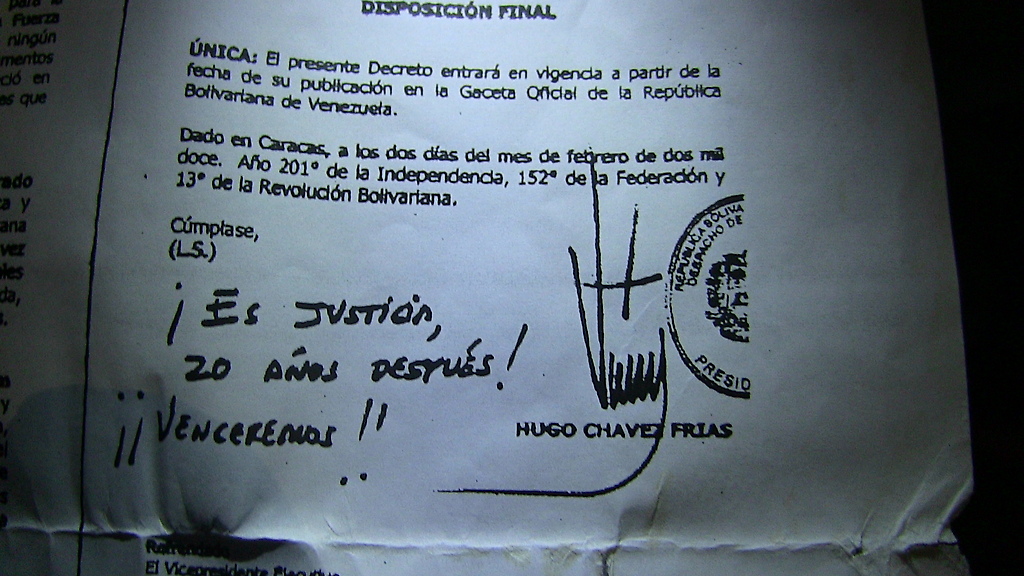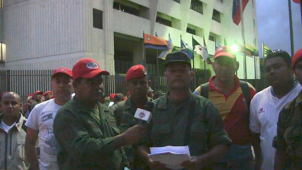 Jueves, 31 de octubre 2013.- Un grupo de veteranos militares participantes de los hechos del 4F y 27 N de 1992, se han concentrado frente al Tribunal Supremo de Justicia, en reclamo de la restitución de sus derechos, que les fueron conculcados como castigo de la IV República por su involucramiento en los alzamientos cívico militares que fueron el parto de la revolución bolivariana. Entrevistados algunos de ellos, nos explicaron la situación por la que están pasando, que consideran injusta e irregular, al no serles reconocidos sus derechos de reincorporación a la Fuerza Armada Nacional Bolivariana, a pesar de existir un decreto emitido por la Presidencia de la República. Se habla de "depuración de listas", de "perdidas de expedientes" y de otros hechos que, de acuerdo con sus denuncian, están perjudicando a numerosos oficiales que expusieron su vida y su carrera militar por obrar en las insurrecciones cívico-militares que abrieron la puerta de la historia a la revolución bolivariana liderizada por nuestro Comandante Chávez. En el mes del 21 Aniversario del levantamiento del 27 N, estos hombres y mujeres de armas, que se definen como "hijos de la Patria, hijos de Chávez y hermanos de Nicolás", reclaman sus derechos, la justa restitución y reconocimiento de los honores y condiciones que merecen, como protagonistas excepcionales de los hitos históricos que abrieron los senderos de los nuevos rumbos emprendidos en pos de la segunda independencia, la soberanía y la transformación socio-política de la Nación. El Legado de Chávez reclama el lugar que les corresponde a los compañeros y compañeras de armas que con él compartieron y le siguieron, al irrumpir y dar inicio a la gesta de la nueva Patria Bolivariana. Extraña que en los medios públicos del Estado no se haga ninguna referencia al reclamo de estos patriotas.