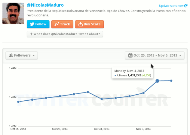 La página web Twittercounter registró en este gráfico la pérdida y recuperación de seguidores por parte de la cuenta @NicolasMaduro