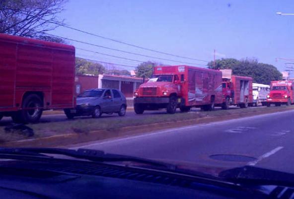 Los empleados utilizaron los camiones con los que se realiza la distribución para manifestarse en la zona norte de Maracaibo.
