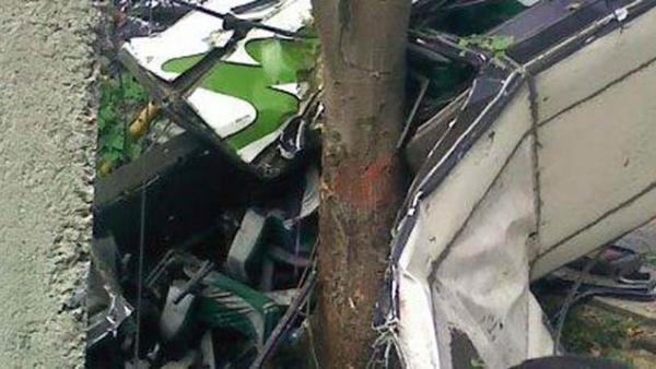 Según la versión de los pasajeros que sobrevivieron, la buseta se estrelló contra un árbol y un poste y al volcar una guaya la partió en dos.