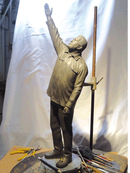 24/11/13.- El artista merideño Israel Linares da los últimos toques a la escultura de 52 centímetros del Comandante Supremo Hugo Chávez, que conmemora el cierre de campaña del pasado 4 de octubre que lo llevó a ganar la elección presidencial el 7 de octubre de 2012.