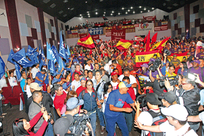 En un ambiente de fiesta animado con música revolucionaria, en el que la militancia desplegó las banderas de sus partidos, afiches de los candidatos y hasta megáfonos, los representantes del Partido Socialista Unido de Venezuela (PSUV), Movimiento Electoral el Pueblo (MEP), Partido Comunista de Venezuela (PCV), Unión Popular Venezolana (UPV), Podemos, Redes, Patria Para Todos (PPT) y Movimiento Tupamaro, saludaron a los postulados bolivarianos y se comprometieron a luchar unidos para obtener la victoria electoral el 8-D.