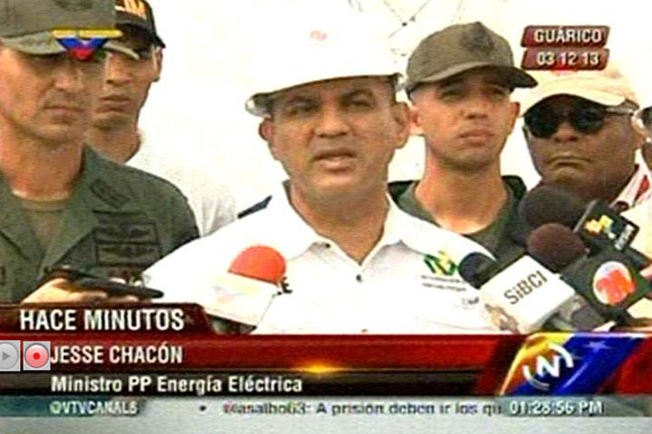 03-12-13.-El Ministro para la Energía Eléctrica, Jesse Chacón, informó la tarde de este martes, desde el estado Guárico, que el tipo de falla que originó la caída en la línea 765, uno de los pilares del sistema eléctrico nacional, nunca se había registrado en 30 de servicio que tiene la estructura que surte de energía al centro y occidente de Venezuela.