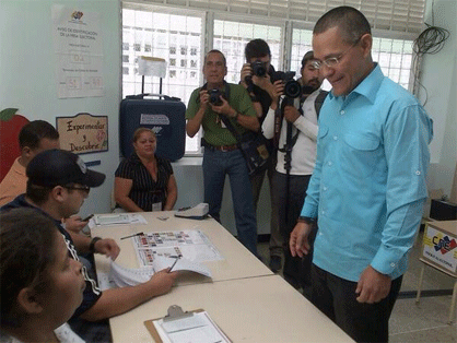 8 de diciembre de 2013.- El candidato del Gran Polo Patriótico (GPP) a la Alcaldía Metropolitana de Caracas, Ernesto Villegas, resaltó el entusiasmo con el que acuden los ciudadanos a sufragar este domingo en los comicios municipales y resaltó que con la participación se nutre la democracia venezolana.
