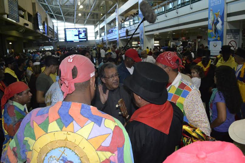 Caracas, diciembre 9 - Una delegación de los Diablos Danzantes de Corpus Christi, nuestro primer Patrimonio de la Humanidad acudió al aeropuerto de Maiquetía para recibir con toda alegría a la delegación de la Parranda de San Pedro que llegaba procedente de Azerbaiyan, donde fueron reconocidos por la UNESCO con igual distinción, pasando a ser nuestro segundo Patrimonio Mundial.