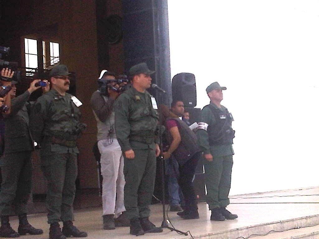 En las primeras horas de la tarde, el General en Jefe Vladimir Padrino López, Comandante del Comando Estratégico Operacional, se dispuso a realizar inspección en algunos Centros de Votación de la ciudad Capital. En esta oportunidad, hicimos parada en el "Patio de Honor" de la Universidad Militar Bolivariana, mejor conocido como "Patio de Honor de las Academias", allí el G/J Padrino López pasó revista a la agrupación "Reserva Estratégica" la cual esta conformada por efectivos de la Guardia Nacional Bolivariana capacitados en materia de orden interno.