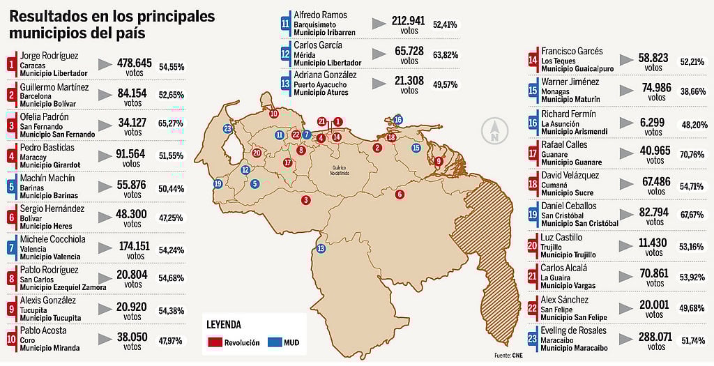 Rodríguez advirtió que en el caso de las alcaldías ganadas por la oposición en los municipios del estado Miranda en el área Metropolitana de Caracas, el 8-D reveló cosas interesantes.