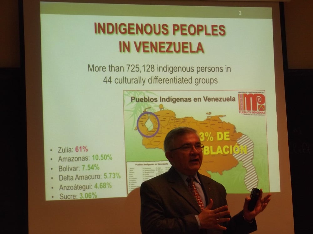 En sus intervenciones el ilustre representante de nuestro gentilicio disertó, ante una audiencia integrada por estudiantes y académicos, sobre preceptos constitucionales, leyes orgánicas venezolanas y convenios internacionales que establecen como objetivo la justicia social y los derechos humanos, territoriales y culturales de un grupo de compatriotas cuyos derechos habían sido históricamente vulnerados: los pueblos Indígenas.