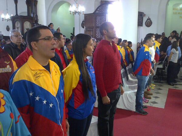 6 de enero de 2014.- Este lunes 6 de enero se llevó a cabo la tradicional Misa del Deporte en la iglesia La Pastora de Caracas. La ceremonia religiosa contó con la asistencia del vicepresidente Ejecutivo de la República, Jorge Arreaza; la ministra del Poder Popular para el Deporte, Alejandra Benítez; los atletas Rubén Limardo, Pastor Maldonado, Nahomi Soazo, entre otras glorias deportivas de la Patria.