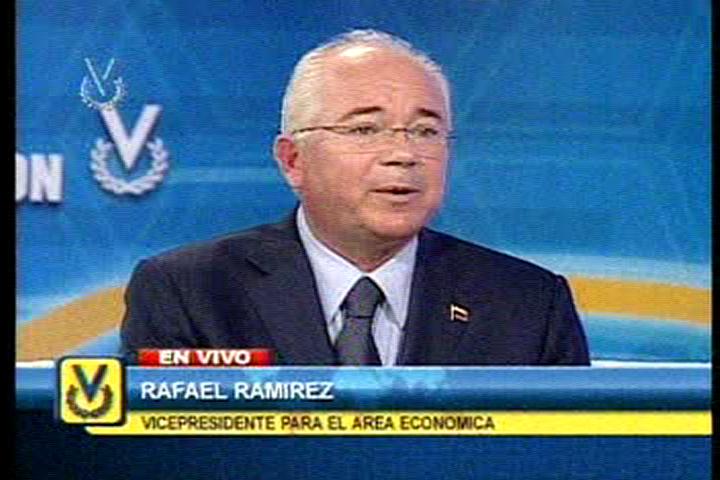 23-01-14.- El vicepresidente para el Área Económica, Rafael Ramírez, estimó este jueves que “nuestro Bolívar está devaluado porque lo están atacando”, en una entrevista realizada en Venevisión en horas del mediodía de este jueves.