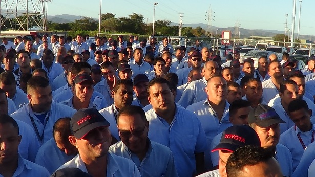 Lunes 3 de febrero.- A las 5:45am ya se observaba movimiento en las adyacencias de la sede de la ensambladora Toyota de Venezuela, ubicada en Cumana, estado Sucre. Luego de un largo viaje y varias reuniones, dirigentes sindicales, delegados de prevención y trabajadores de diferentes empresas que conforman la FUTAAC, se concentraron alrededor de los portones de la empresa para iniciar lo que sería una Asamblea con los trabajadores de Toyota, para discutir la actual situación del sector automotriz.