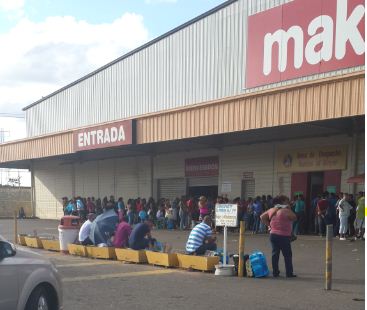 El Tigre 8 de frebrero de 2014.-En la ciudad de el Tigre Edo Anzoátegui está ocurriendo lo mismo que ocurre en la frontera Colombo Venezolana con el bachaqueo de alimentos, desde muy tempranas horas de la madrugada se aglomera una gran cantidad de personas provenientes de los Sectores circunvecinos y también de otros estados, como el estado Bolívar. La mayoría son buhoneros que vienen con un mismo objetivo, llevarse todo los productos escaseados como harina pan, papel toilet, mantequilla, suavizante, leche, el cual logran llevarse en grupo familiares con la complicidad interna de los vigilantes de seguridad de Makro, policías y guardias Nacionales que permiten este tipo de irregularidad, que muy bien pudiera controlarse a través del último número de cedula, luego estos buhoneros hacen su agosto vendiendo la mercancía a precios del dólar, harina pan 35 Bsf, papel toilet 60 Bsf, mantequilla 40 Bsf, leche en polvo el kilo 300 bsf.