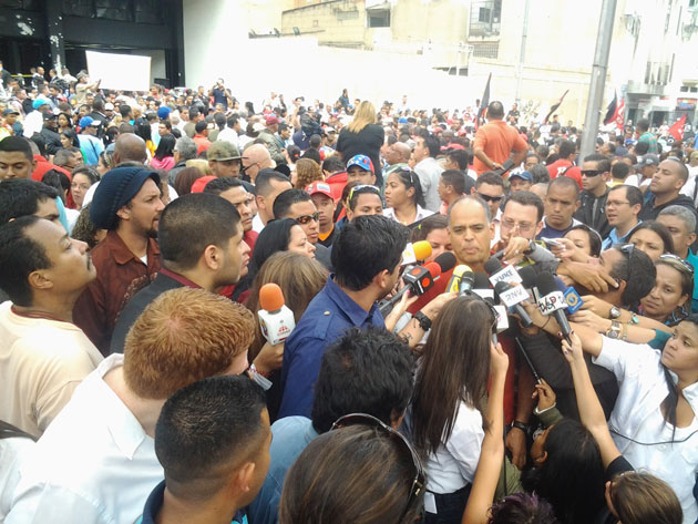 “Vinimos a consignar las fotos de estos hechos protagonizados por los grupos violentos que asediaban al hotel y sus inmediaciones, incluyendo el Teatro Teresa Carreño. Además, entraron encapuchados al lobby del hotel y todo esto comandando por el fascista de Leopoldo López”, comentó.