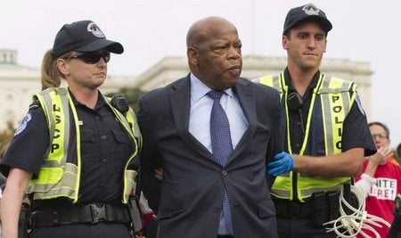 Los legisladores arrestados fueron Luis Gutiérrez y Jan Schakowsky, ambos de Illinois, y John Lewis, de Georgia, activista y cofundador del movimiento de los derechos civiles de la década de 1960, además de los congresistas por Nueva York Charles Rangel y Joe Crowley; Raúl Grijalva, de Arizona; Keith Ellison, de Minesota; y Al Green, de Texas, todos ellos también demócratas.