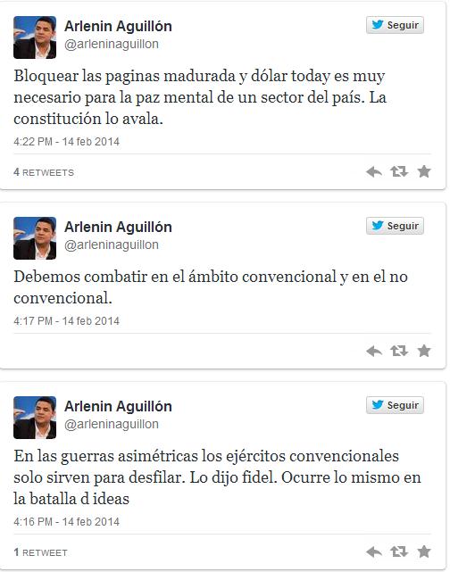 “Maduradas y Dólar Today son los principales difusores de las operaciones psicológicas. Son verdaderos laboratorios de terrorismo mediático”, escribió Aguillón.