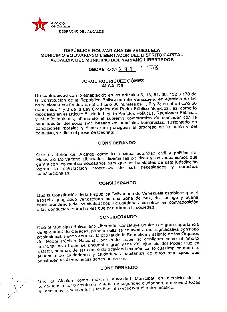 Explicó que “solo se van a permitir manifestaciones publicas que cumplan con el requisito indispensable de solicitar la autorización”.