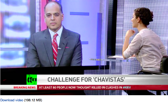 Andrés Izarra: No es una violencia generalizada como la que hemos visto actualmente en Kiev. Está limitada a ciertos focos. Por supuesto los EE.UU., quisieran crear una situación como la que estamos viendo en Kiev, pero la situación en Venezuela no está ni siquiera cerca de lo que está sucediendo allá en este momento, es muy difícil compararlas.