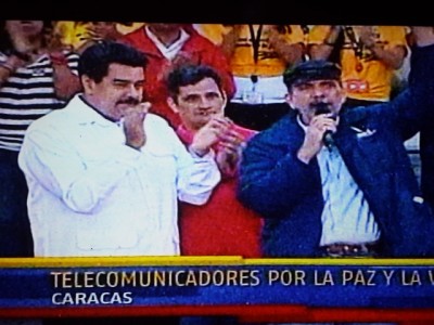 Caracas, febrero 25 - El presidente de la República, Nicolás Maduro salió al encuentro de la nutrida marcha que los trabajadores de la Cantv realizan por la Paz y la Vida.